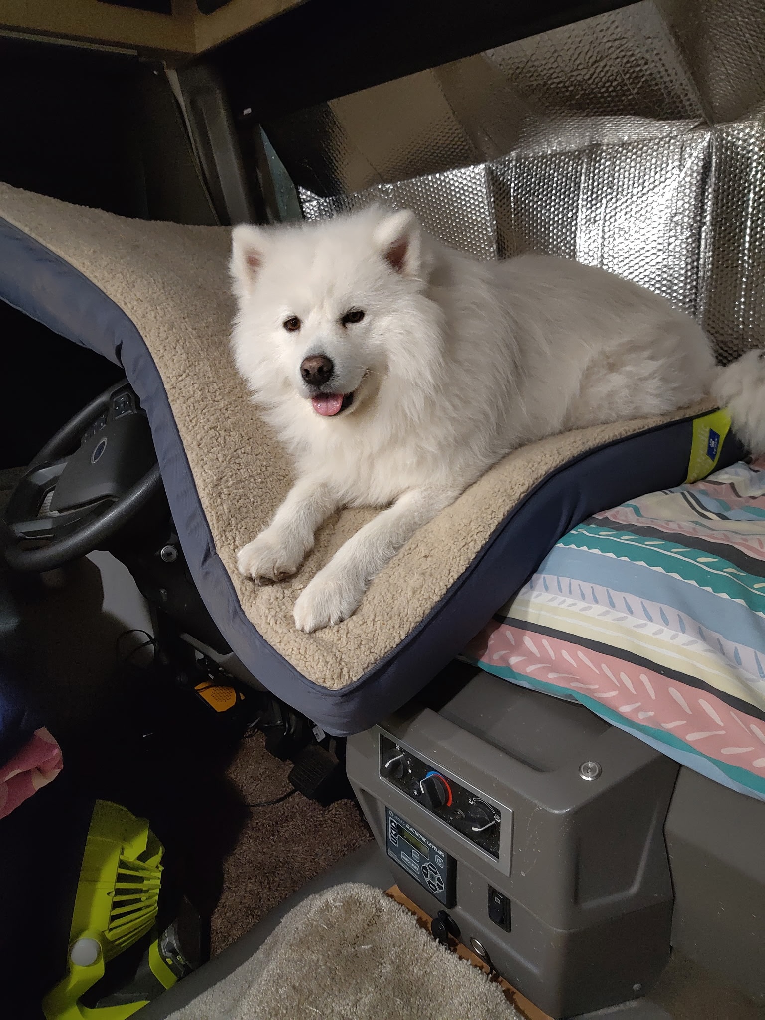 Asuna’s good moods are contagious, and with a cross-country RV trip on the schedule to attend the AKC National Championship Dog Show in Orlando, her foster family decided to bring her along. Adventure! There she was quick to win the unofficial “Most Charming” award.