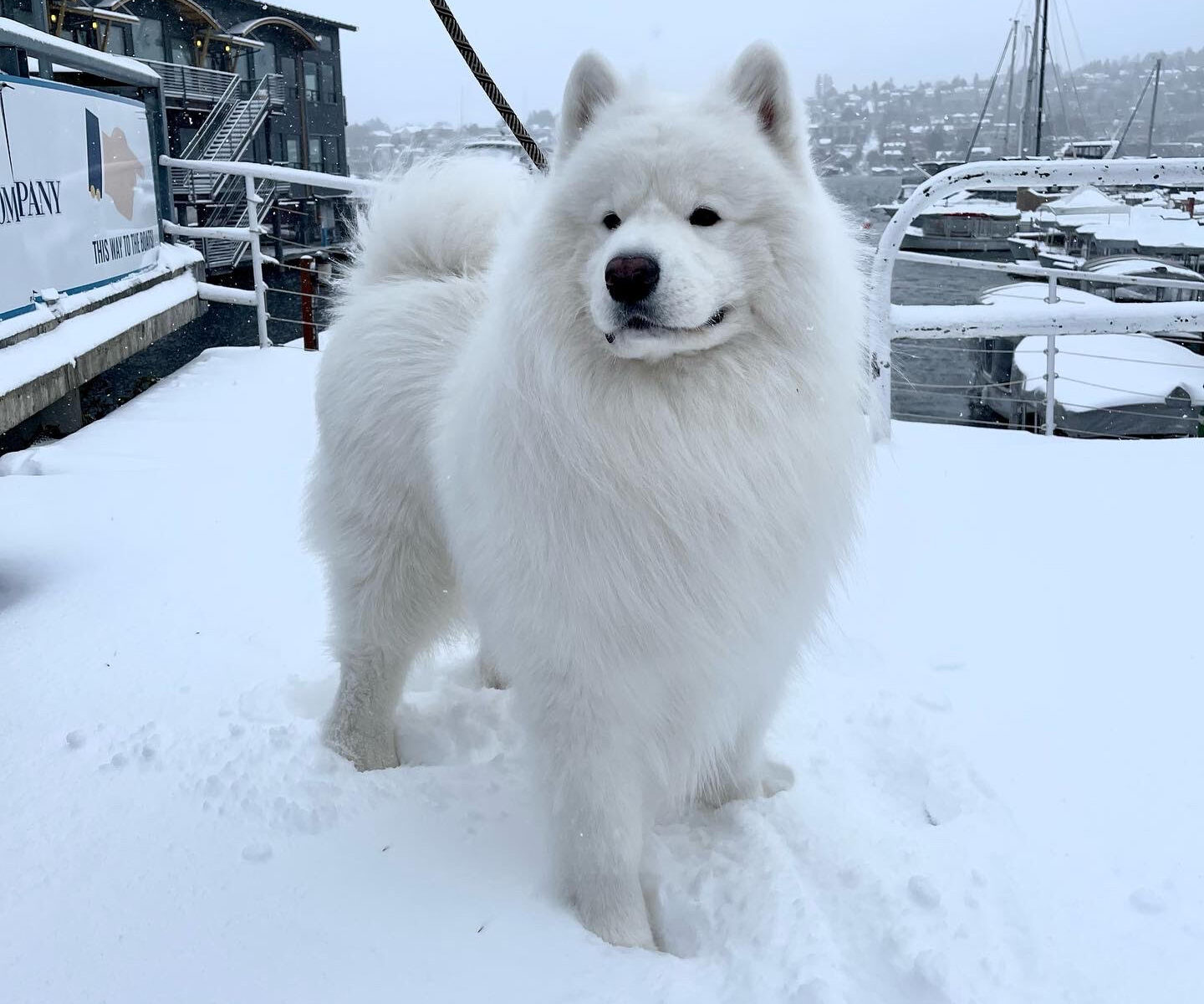 Koda is a very vocal dog and eager to tell you that he wants to be a part of the family. He loves to sing along with car alarms, guitars, and as a big “Samoyed talker” likes to have conversations about treats, car rides and stuffies, which he knows by name. He loves blueberries, bananas, and treats and takes them with a very soft bite. He’s also a big snuggler and loves to curl up on the couch with his people.